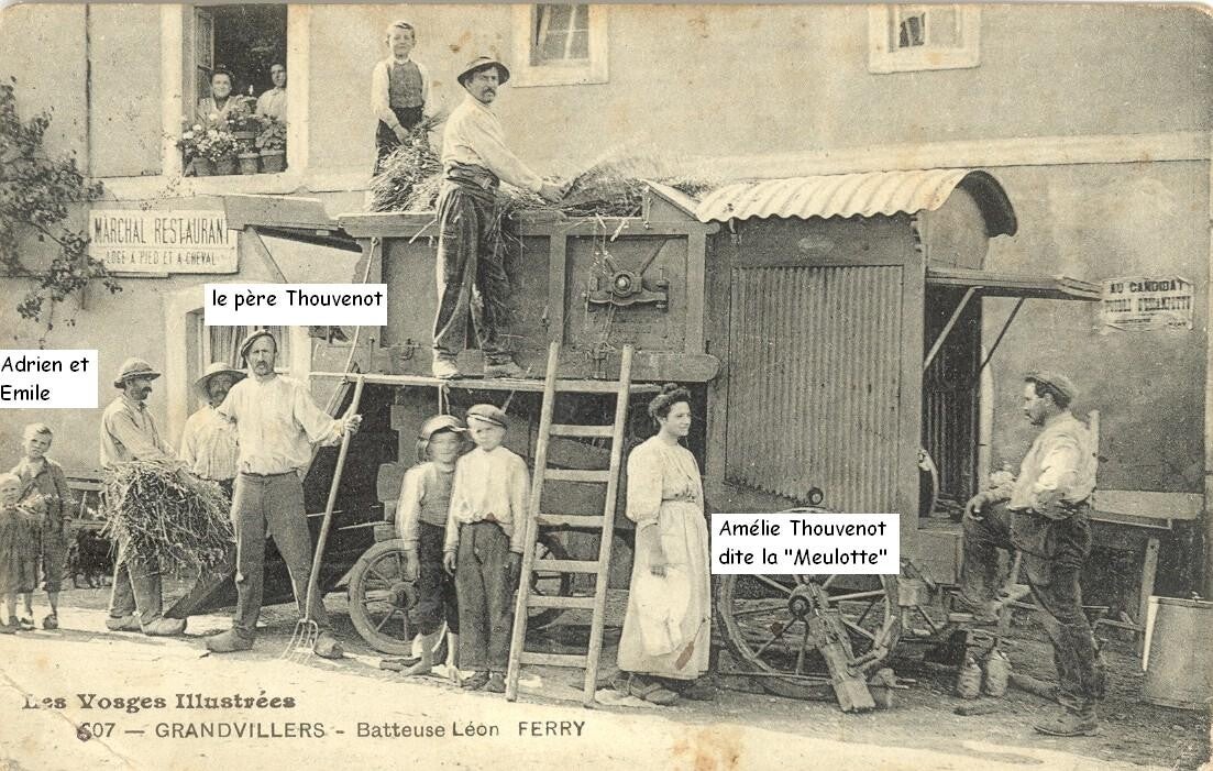 Adrien THOUVENOT était né le 13 octobre 1896 à Grandvillers, c’était un homme grand et maigre, baroudeur né, qui avait fait la guerre de 14 (pour venger son frère Emile blessé), puis avait été gendarme, avait participé aux conflits en Indochine, au Tonkin, et avait traqué le bandit Spada en Corse… Il sera remobilisé en 39-45 mais ce sera surtout l’occasion de fêter les retrouvailles avec ses copains gendarmes dans un bistrot qui sera dévalisé le soir de leur beuverie sans qu’aucun n’entende les voleurs, ils prendront tous un sacré savon !